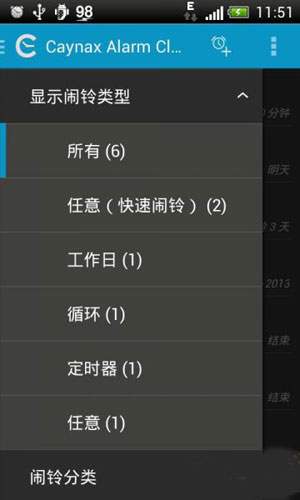 Caynax闹钟性能强大,除了拥有闹钟功能外,同时具备时间管理、任务提醒、报警提示等功能。该版本已付费修改,同时也已汉化为中文版本。