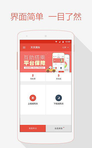 天天用车,提倡最方便的合乘服务,是您上下班最好的交通助手。有了天天用车,大家可以提前约定合乘车辆,选择最佳的出行方式,享受便捷的交通生活。当然,上下班开车的朋友也可以参与合乘,在帮助别人的同时也为自己赚得一笔开销。