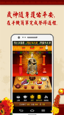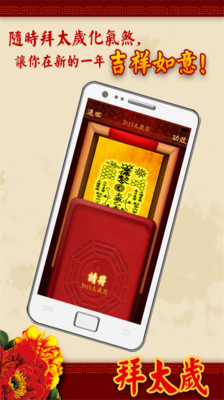拜太岁保平安健康,是目前最受欢迎的拜太岁应用。此应用是专为2015年犯太岁的朋友所设计的命理应用,希望犯太岁的朋友可以诚心供奉祭拜,在本命年依然可以万事如意。