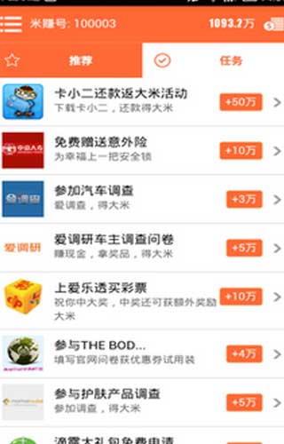 米赚手机赚钱2.80应用特色: 1.只要你在手机上动动手指完成任务就能赚钱。 2.支持多种兑换方式,让你免去后顾之忧。 3.向好友推荐还有更多惊喜哦!