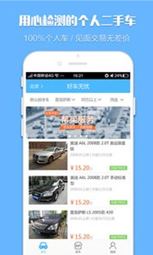 好车无忧是一款专业实用的二手车在线交易应用软件,致力打造专业便捷高效的二手车在线交易平台,为用户买卖二手车提供专业安全的服务体验,上线出售的二手车都经过好车无忧专业技术检测,质量有保证。