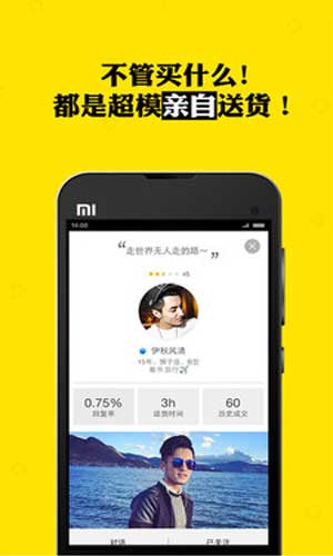 咸蛋家app是一款非常高端大气上档次的手机购物平台,与其他软件不一样的是,不管你在这里卖什么,都是超模亲自送货!你还可以直接查看你附近的超模,为你超快速的送货!超模颜值超高,赶快下载体验吧!
