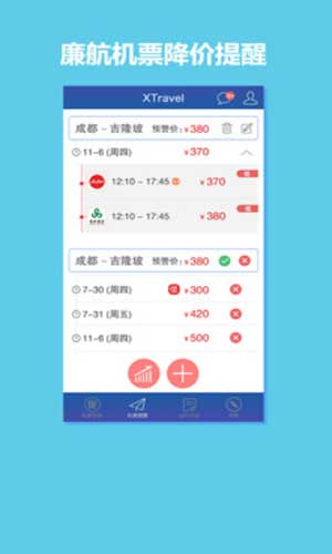 出境邦app的特点: 1、线上订机票,省时省力,非常方便。 2、各大航班机票降价提醒,轻松买到最低票价。 3、出发之前的准备工作一次性搞定,酒店签证出行清单,那都不算事儿!