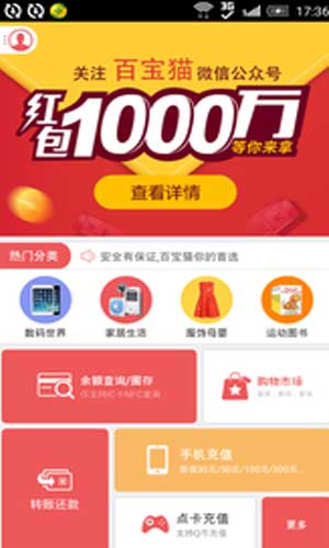 百宝猫app是一款非常好用的手机购物平台,你可以在这里出售你的闲置物品,实现物品快速变现,使用起来非常的方便,还可以直接充值话费和点卡,非常实用。