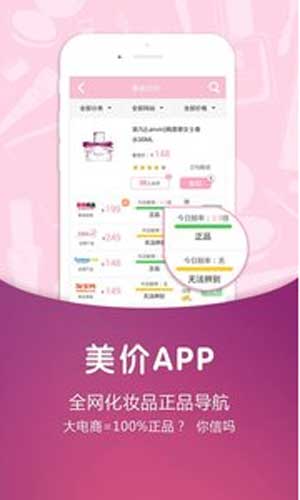 美价网特色: 1.全网最全的化妆品条码信息,懒得搜索就扫一扫。 2.美价对收录的认证为正品的产品担保,假货按赔率N倍赔付。 3.看点评,选美妆,严格审查,不删差评,还原消费者真实评价。 4.全网32.2万海量妆品,31家网站131.2万条报价,正品3关全方位分析。