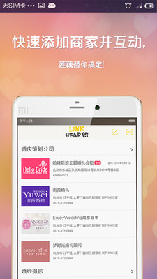莲藕婚礼管家3.0.1特色: 1、高颜值电子婚礼请帖制作模板,超便捷操作方法,开启美好結婚第一步。 2、超强婚庆管家,完美升级婚礼策划!电子婚礼请贴制作邀约来宾,即可启程婚礼升级计划。 3、婚庆公司、婚礼策划、婚纱摄影、婚宴酒店,通通莲藕婚庆管家为你进行超便捷沟通、方案选取确认、云端存储。