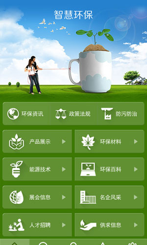 智慧环保app应用特色: 1.有着环保资讯、政策法规、防污防治等等信息。 2.上面有着最全面的关于环保的各项事宜。 3.甚至还有名企风采、人才招聘、供求信息等。