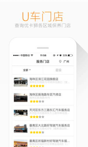 优卡狮可以加盟吗? 1.专业服务:优卡狮app致力于为你打造更贴心更专业的爱车服务。 2.智慧保养:输入车型和行驶里程,一键智能匹配保养,优卡狮app即可为你线上预约,线下专业快捷服务。 3.坚持正品:优卡狮(Ucars)坚持正品,厂家直购零配件,适配43000多种车型。