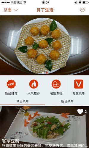 贝丁生活app应用特色: 1.用户可以通过手机等移动客户端在任何地方、任何时间浏览我们推出的菜品、活动等信息。 2.了解各种菜品价格、食用信息,根据自己的喜好、需求下单,我们根据订单完成配送。 3.放置了新品推荐、广告、今日菜单、明日菜单等信息,用户可以通过点击查看详情,也包括菜品的详情。
