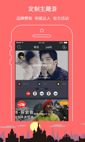圆周派app应用特色: 1.是一款联系喜欢旅行、在旅途中追求新鲜玩法的年轻人群的应用。 2.它可以帮助你寻找到各种新奇、有趣的出游活动,以及兴趣相投的旅伴。 3.在这款应用上,你既能发起、也能选择加入各类个性化的主题游中。 4.可以通过群组聊天室进行即时交流,并轻松实现行程路线的在线预订,还有机会获得种类丰富的赞助商品。