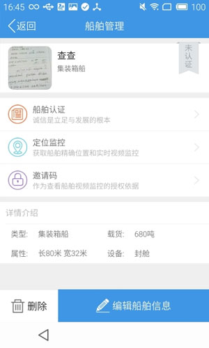 浩云航联app应用特色: 1.【船舶监控】提供优质的船舶监控服务,随时随地了解船舶动态。 2.【轨迹追踪】使用GPS定位技术,实时跟踪展示船舶航行动态。 3.【船舶管理】方便快捷的管理船舶信息,高效快捷。