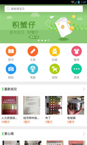 飞蟹app是一款十分好用的生活类的手机软件!自己没用的东西扔了是不是觉得浪费呢?那么就赶快来飞蟹app吧!处理你的闲置物品妥妥的!不管是闲置家电还是书本,在飞蟹app都有它的价值!