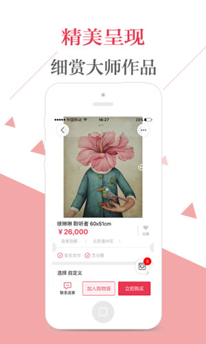 艺客微购app是一款十分便捷的手机购物软件!喜欢艺术品吗?那就赶快来艺客微购app吧!这里面的艺术品通通都可以带回家哦!而且艺客微购app里面的艺术品都是为你精美呈现!发现生活发现美吧!