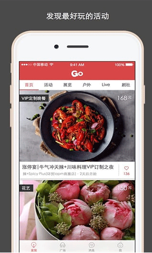 走起goapp,一款周边娱乐交友软件,走起goapp带你发现当下最潮玩法,周末休假去哪玩?来走起go,派对、演出、集市、下午茶,各种精彩活动等你来参加,跟着达人走起go,精彩生活从这里开始。