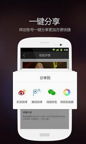 三生播客手机版软件特色: 1.您可以在三生播客手机版将喜爱的视频随意下载,存储到电脑或手机。 2.还能使用三生播客手机版将其带到世界各地,供更多三生事业伙伴共享。 3.三生播客将全面承担今后公司大型会议的视频直播任务,用户只要访问三生播客,关注实时直播公告,便可在第一时间同步观看各项直播内容。