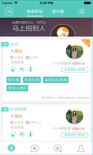 美业直聘app,一款针对美容美发行业内的专业性招聘软件,美业直聘app汇聚海量真实优质的美业行业招聘信息,用户可通过美业直聘app直接与招聘方联系,同时美业直聘app还向用户提供专业的美业资讯。