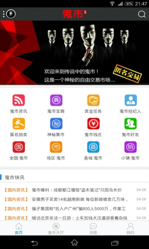 鬼市app,一款商品自由交易平台,鬼市app,带你进入自由集市文化诞生的神秘世界,下载鬼市app,可用手机随时查看各种交易品,在鬼市商家和交易人都是匿名,各种你想要了解交易品,统统都有哦。