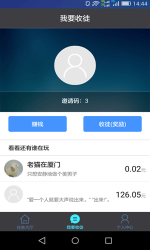 钱咖联盟app特色: 1.分享赚钱:转发的文章被好友阅览或再次转发,您都可以获得收入。 2.每日签到:您只要登录APP点击签到,即可轻松赚钱,没错每天都有哦。 3.收徒为赢:独特的师徒系统,让您不再孤单,并享高达25%徒弟收入分成。