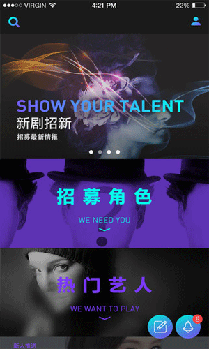 选角手机版,一款专为演职人员打造的影视圈求职软件,选角手机版为用户提供找剧组、签角色、找走秀、接通告等服务,专业剧组也可通过选角手机版在线找演员、节目找主持、找歌手、活动找模特、找网红等。