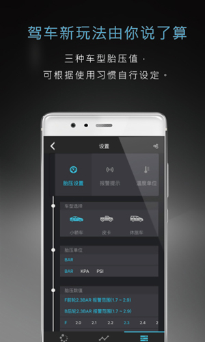 布古汽车生活手机版来咯!驾车新玩法由你说了算!布古汽车生活手机版支持三种车型的胎压值,还能够可根据使用习惯自行设定。布古汽车生活手机版有着非常智能化的数据储存和分析,历史数据可以随时看!
