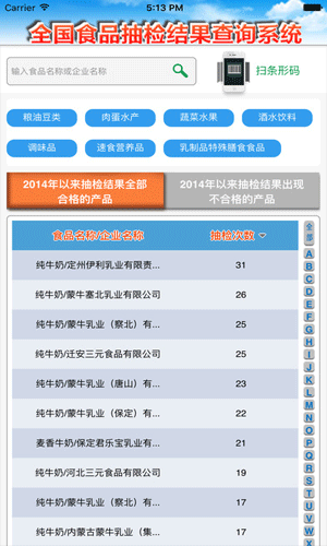 食品抽样检查是对食品质量状况进行的体检。此前,国家食药监总局定期公布国家和省级食品监督抽检信息,并形成了体量庞大的数据库。国家食药监总局新闻宣传司司长颜江瑛介绍,食安查App的数据信息正是来源于此,主要包括2014年以来国家和各省级食品药品监督管理局公布的食品安全监督抽检合格和不合格结果,共计16万条商品信息,覆盖33大类产品。