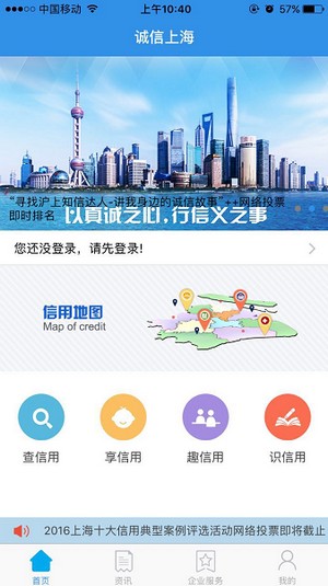 诚信上海app是一款以信用为主体的手机软件,提供全新的服务真正达到让失信者寸步难行,让守信者一路畅通的体验,以诚为本享受实时的生活服务,提供了信用查询、推送、展示、比较、互动、应用等服务,诚信上海app涵盖社会群众衣食住行的各个方面! 诚信上海app特色: 1、培养公民知信用、查信用、晒信用、用信用的信用意识,基于守信联合激励的原则,围绕公民日常生活开展信用服务。 2、为信用主体提供行政审批的绿色通道、公共服务的便利措施,充分发挥信用在放管服中的支撑作用。 3、加速推进上海社会信用体系建设,打造诚信上海、和谐上海。 诚信上海app功能: 1、信用报告查询:通过实名身份认证的用户可以查询本人的公共信用信息报告。 2、公共信用分推送:通过身份认证后可将分数通过APP主动推送到该用户手机终端。 3、当用户有失信行为导致信用分发生变化时,系统主动推送相关通知。 4、公共信用分展示:用户查询过本人信用分后,可通过微信好友、微信朋友圈、微信收藏、支付宝、QQ空间等方式进行分享。 5、公共信用分办事:与各类电子政务、电子商务和社会公共服务机构合作。 6、将公共信用分用于社会群众衣食住行的各个方面,真正达到让失信者寸步难行、让守信者一路畅通。