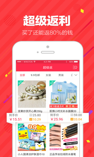 返利赚新版本现在已经更新到新版本了哦!每天来返利赚新版本抢到,就能够领取现金奖励哦!而且奖励还可以直接体现到支付宝,返利赚新版本有着专业买手精挑细选、专业砍价,最高返利90%,超高性价比嗨得不要不要的(返利赚用户专享哦)!