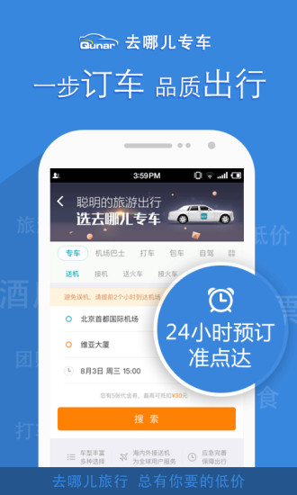 去哪儿旅行软件作为中国领先的无线和在线旅游平台,去哪儿旅行软件支持用户低价购买近60万条国内国际航线,42万家国内酒店、16万家国际酒店;超100万条国内外度假线路和2万种景点门票;享受国内160座城市,以及国外86座城市的在线叫车、自驾等服务。