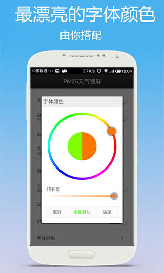 PM25天气锁屏,一款将锁屏与天气完美结合的软件。爱生活,更爱锁屏,用它随时告诉你最新天气及PM2.5指数,做好出门的准备,享受一天的好心情。更多炫酷壁纸+字体,随你搭配! (PS:下载安装之后,请先将其加入白名单,防止被手机卫士查杀,影响使用!) PM25天气锁屏软件特色 -提供最新天气情况及PM2.5指数 -锁屏与天气的完美结合 -知晓天气,做好出门准备 -百变字体+精美壁纸,任你搭配