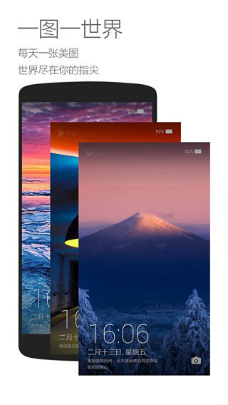 微软锁屏,一张图,一段话,一世界。用最精美的图片,述说那最动听的故事。每次开启,都带给心灵极大的震撼。每日一更,每日一语,你会发现,其实这个世界仍充满着美好! 微软锁屏软件功能 1.每天更新一张美图,并配有文字介绍; 2.简洁美观的图案解锁,至美新体验; 3.左右上下滑动,均代表不同功能; 4.锁屏界面显示未接电话机短信。 微软锁屏1.1.0版本更新内容 1.【新增】图案解锁方式,保护隐私; 2.【优化】用户体验及细节方面。