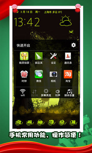 精灵锁屏恶搞解锁版,又名整蛊专家锁屏精灵,用搞怪的方式锁屏与解锁,整蛊别人,你想不想试试呢?放心,整蛊绝对正宗,堪比万圣节,让别人再也不敢随意翻看自己的手机了。 精灵锁屏恶搞解锁版软件特色 1.用出人意料的方式点亮手机,整蛊他人; 2.各种炫丽动态的场景选择,绝对有你的菜; 3.独特的特效处理手法,真实再现; 4.DIY解锁,挑战你的创意; 5.多款小插件的组合,任你搭配使用; 6.随意吐槽经典,开启逗比模式。 精灵锁屏恶搞解锁版3.231版本更新内容 1.【新增】密码解锁功能; 2.【优化】产品适配性问题; 3.【优化】细节及界面显示。