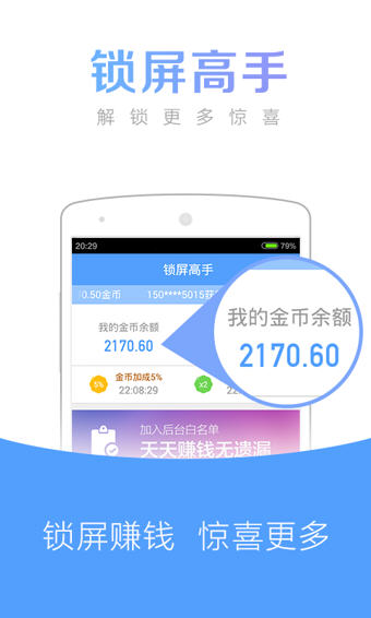 锁屏高手,最好用的手机赚钱工具。想要使用手机轻松赚钱,赢取海量锁屏收益,那就来锁屏高手吧。这里有最多最丰厚的锁屏奖励,最好看最漂亮的锁屏壁纸,让您在装扮自己手机的同时领取大量的金币奖励。