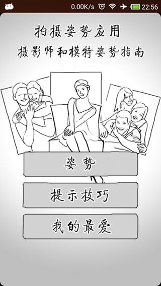 PosingApp,用非常独特的眼光向人们展示拍照pose的各种摆法。简单的插画模式,不论谁都能马上明白。同时,根据场景的不同,也为你一一展示了诸如生活照、婚礼等一系列拍照姿势。 PosingApp修改版软件特色 -根据人物/场景,所做的专属拍照姿势 -简单的插画+文字描述,轻松掌握拍照精髓 -依据身体构造,为你逐一讲解姿势摆法 -有了它,你终于可以摆脱单调的剪刀手了