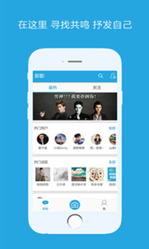 即影相机特色: 1.十几种光影滤镜,专业摄影棚灯光效果。 2.横屏拍照,全图显示,加上字幕,清新范儿爆棚。 3.使用微信、QQ、微博一键登录,免去账号密码烦恼。 4.精选热门图片与用户,按昵称搜索用户,添加关注,轻松发现好内容。