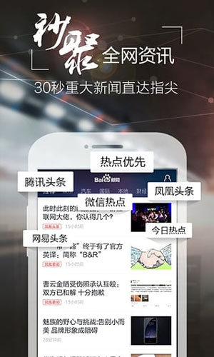 百度新闻头条新闻是一款非常好用方便的手机软件。在这款软件里面,有着朋友们最期待的的头条新闻。不仅如此,百度新闻头条新闻现在为大家30秒聚合全网的资讯,想要快速看新闻就赶快来下载吧!