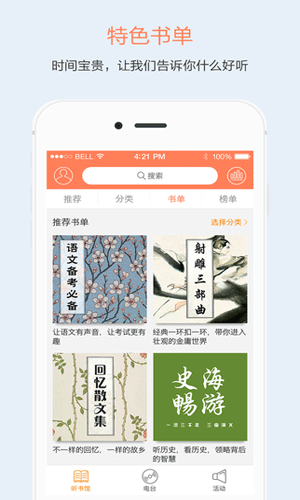 2.书单专题:书海茫茫,特色书单、专题Duang一下告诉你什么好听。