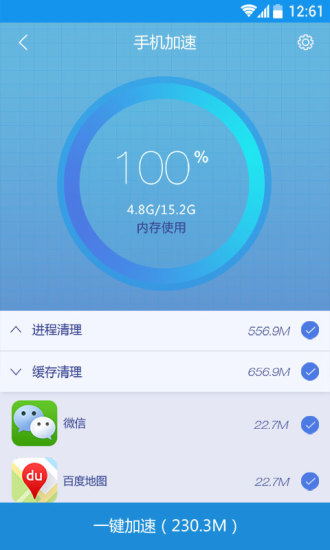 手机加速神器4.4.4支持最新安卓4.0系统,全面清理4.0系统的垃圾内容以及无用进程,让手机健步如飞。