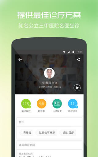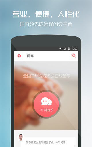 我的医生,一款专注解决你小病小痛的软件。涵盖多个科室,为你和你的家人带来方便。专业的医疗平台,为你所提供的医生均是来自各大主流城市三甲医院,足不出户,就能解决你的疾病烦恼。 我的医生软件特色 1.涵盖儿科、外科、妇科、皮肤科等多个科室,全面解决你所遇到的各种问题; 2.除了免费咨询外,医生还会给你最佳的治疗方案,并全程跟踪,直到身体完好; 3.你还可以与类似病情的患者进行交流,获取防病经验,为你的家人带来健康。 我的医生3.1.4版本更新内容 1.【优化】客服系统,以便快速回复; 2.【修复】上一版本出现的错误。