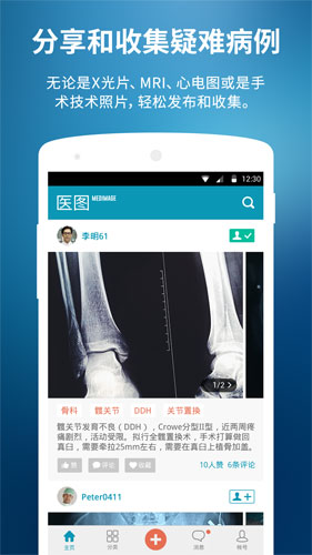 医图app是医疗行业从业者专属的社区软件,这里用户可以分享病例图片与其他的同行进行专业讨论,提升自己的专业素养,构建自己的行业朋友圈!
