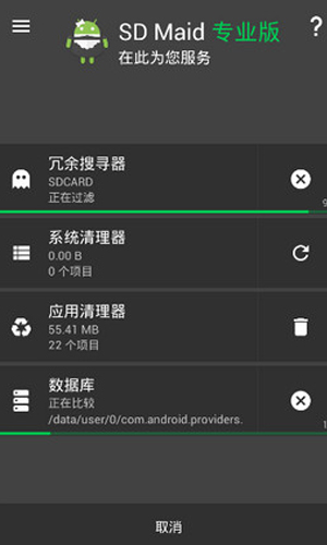 SD女佣专业修改版4.3.5介绍: SDMaid是非常强大的工具。但是使用它需要您自行承担风险。 SD女佣专业修改版4.3.5功能特色: ·没有完美的人,更没有完美的Android。