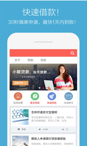 贷款通app软件特色: 1、用户可以使用贷款通app快速放款,一分钟申请,门槛低,信用高。 2、放心贷款,贷款通app为您提供贷款方面的相关知识及最新贷款资讯,避免造成自己利益的损失。 3、贷款通app超低月息,每月享受超低的月息,满足借款人费率低的需求;还有海量理财产品介绍及理财相关知识,钱生钱,就这么爽。