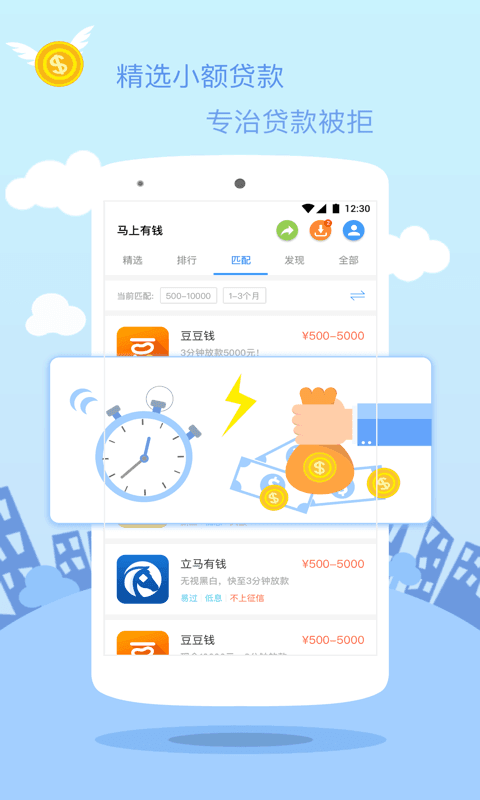 1、闪电借钱:极速小额贷款,线上全自动化信审,快至2小时到账。