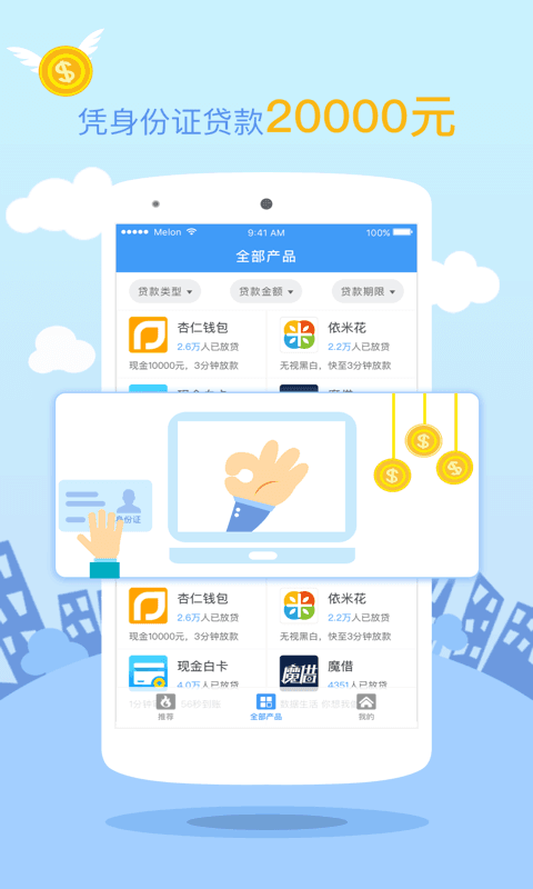 2、门槛超低:无抵押无担保,有身份证就能借。