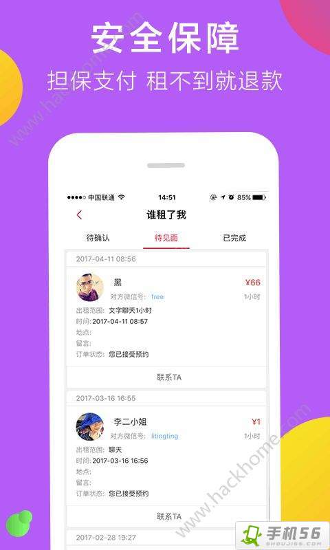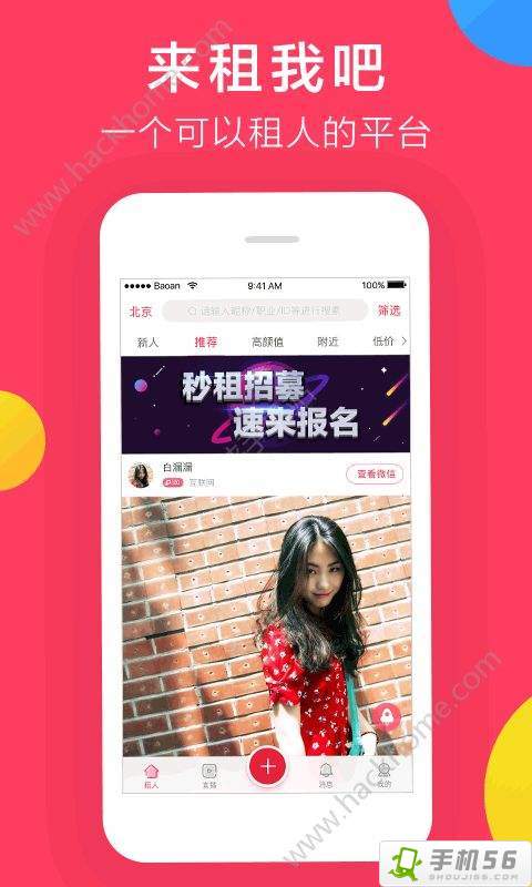 2、“探探校花”平台汇集上百万高颜值单身狗,超过100000个网络红人、50000个模特,快来租他们吧。