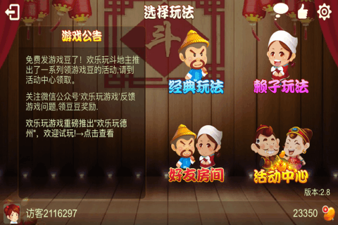 欢乐玩斗地主带有浓厚中国特色的扑克游戏,简单有趣,上手快,娱乐性强。有单机模式,多人模式,真人模式。游戏画面精美,节奏快,玩法简单,娱乐性强!喜欢斗地主、麻将、德州扑克、升级的玩家,快点和QQ、微信、微博、陌陌上玩天天酷跑、飞车、消除、节奏大师的好友来一决高下吧! 每日登录即可领取金币。 游戏特色: 1.丰富的系统奖励 2.人性化操作设置 3.超智能出牌系统 5.有趣可爱的表情