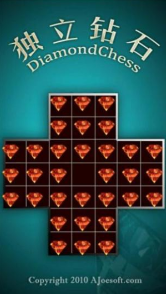 "独立钻石棋"(法国,DiamondChess,又称"单身贵族")与"华容道"(中国)、"魔方"(匈牙利)并称智力游戏界"三大不可思议",都含有很深的数学原理。据说大约在二百多年前的法国大革命前夕,在巴士底狱中关押着一名贵族囚犯。此人面对铁窗,百无聊赖,终于想起下棋可以消磨时光,解除烦闷。但由于他被囚于独间牢房,找不到对手,于是就在当时欧洲流行的“狐狸和鹅”的棋盘上,设计出一种一个自己能够玩的棋。这就是“独立(粒)钻石棋”。公元1789年7月14日巴黎人民起义,攻破巴士底狱,使得这个游戏在社会各阶层传开来。【游戏规则】游戏玩法如跳棋,但不能走步,只能跳。走棋时棋子跳过相邻的棋子到空位上,并且把跳过的棋子吃掉。棋沿棋盘的格线横跳、纵跳,但是不能斜跳,直到最后剩下一个棋子才算胜利。