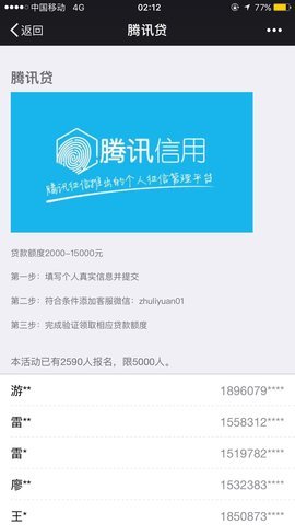 腾讯信用贷款app功能:
