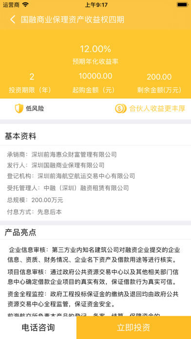 2、为投资者提供高收益理财产品,平台所提供的产品安全稳健,进入门槛低、收益高、回款快。