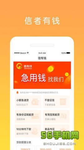 手机56为您提供信有钱借款APP下载!一款专注于小额度贷款服务的应用,内置丰富的借贷产品,智能审核、流程简单、到账极速,对于急需用钱的老哥来说是一个非常不错的选择!