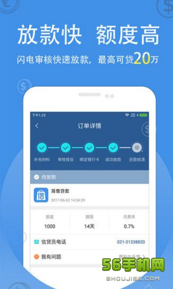 5、操作便捷:借款进度实时查询,到期分期还款提醒,借还方便;